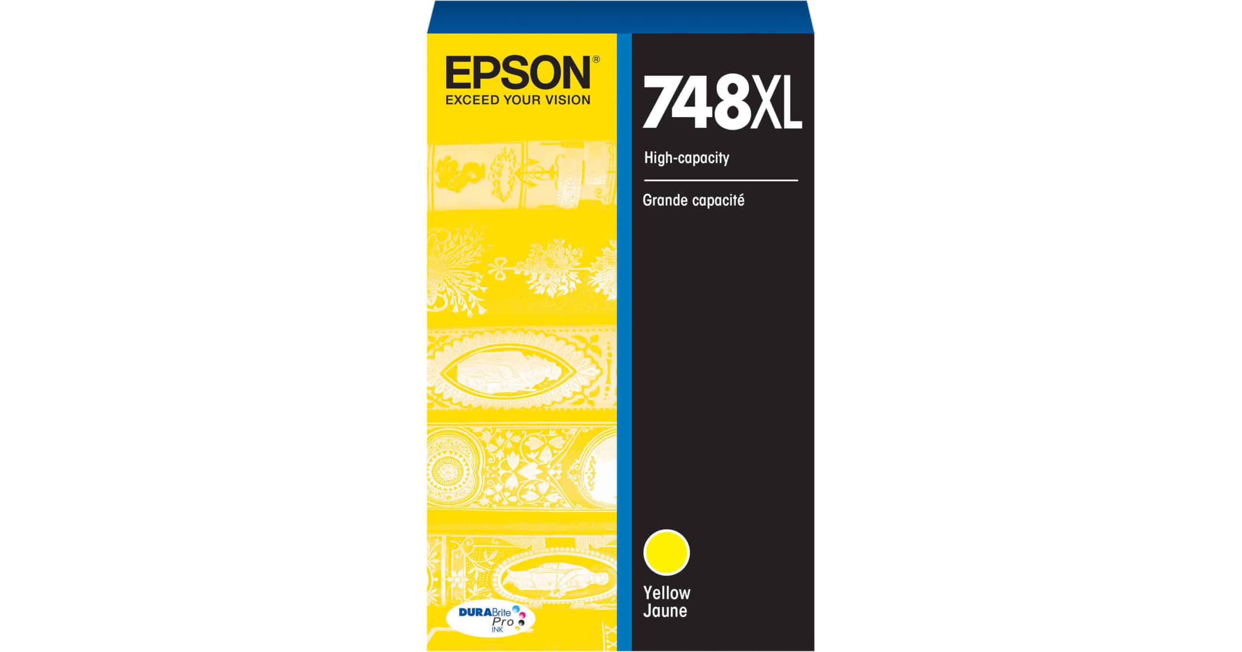 This genuine Epson OEM DURABrite Pro 748XL High Capacity Yellow Ink Cartridge includes free shipping in the contiguous United States courtesy of the Your Printer Toner Store network of sites.