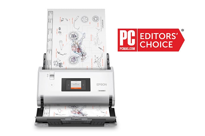 The fast, robust, large-format desktop scanner for high-volume offices. Designed for busy offices, the DS-30000 large-format document scanner makes it easy to take on any project. It features speeds up to 70 ppm 1 and includes a host of productivity features, such as a 120-sheet Auto Document Feeder, dual-sided scanning and a 2. 7″ programmable touchscreen. With versatile paper support, it can scan documents up to 12″ x 17″, as well as folded pages, plastic cards, sealed envelopes, passports 2 and more. It also includes TWAIN and ISIS ® drivers for compatibility with existing software. Designed for the desktop, the DS-30000 easily fits your workspace. Plus, it delivers a 30,000-page peak daily duty cycle 3 and is backed by a 3-year limited warranty 4 .