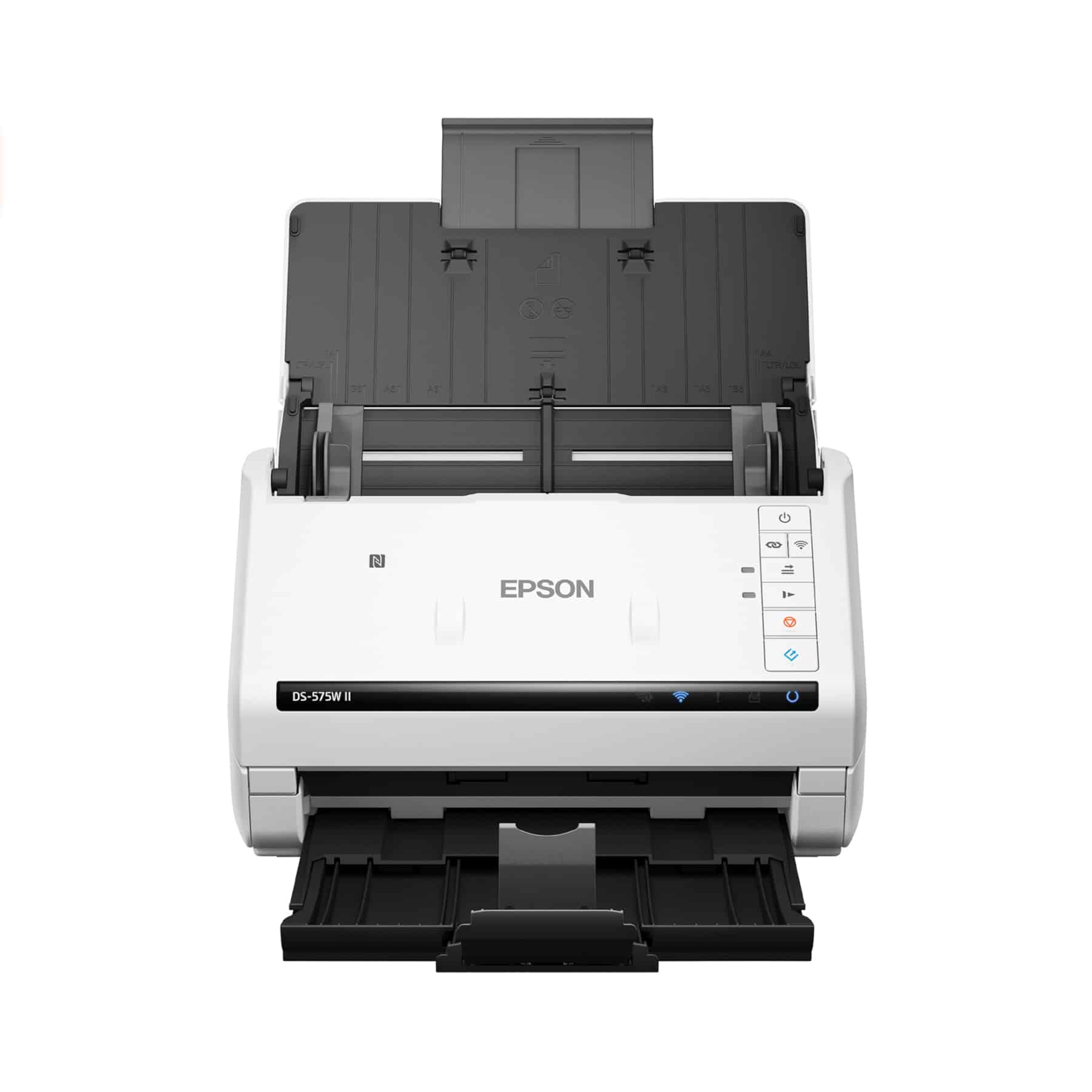 The wireless color scanner for fast, efficient document management. Delivering high-quality scans at up to 35 ppm/70 ipm 1 , the DS-575 W II color scanner offers efficient document management for busy businesses. Get easy wireless setup with the Epson Smart Panel™ app 2 . Wirelessly scan to smartphones, tablets or online storage accounts 3 . Quickly scan stacks of pages via the 50-sheet ADF. Included TWAIN and ISIS ® drivers ensure easy integration with most existing software, while a peak daily duty cycle up to 4,000 sheets 4 helps enhance productivity. And, it’s all backed by an industry-leading 3-year limited warranty, including an Advance Exchange program with free Next-Business-Day shipping 5 .