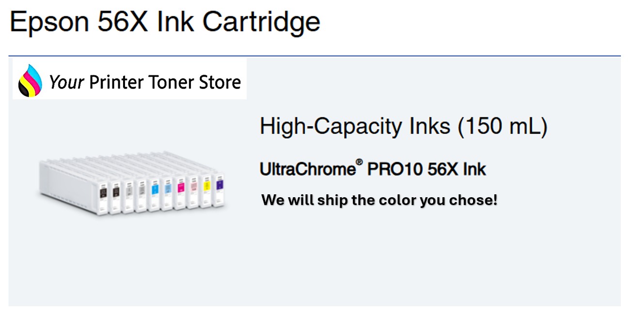 This genuine Epson OEM T56X Violet 150mL includes free shipping in the contiguous United States courtesy of the Your Printer Toner Store network of sites.