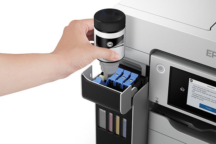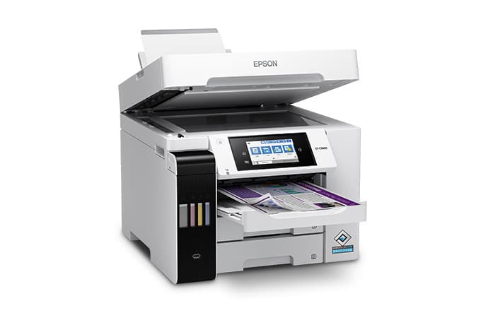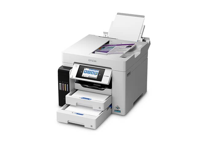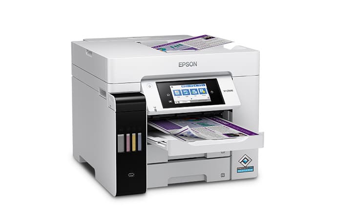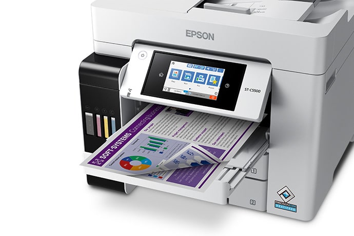 The Epson WorkForce Pro ST-C5500 is a powerful all-in-one color MFP designed to meet the demands of modern businesses. With its innovative supertank ink system, blazing-fast print speeds, and ultra-low power consumption, this printer combines speed, precision, and sustainability in one compact solution. It supports PCL and PostScript® for enterprise workflow compatibility and delivers an impressive total cost of ownership with high-yield ink bottles.
