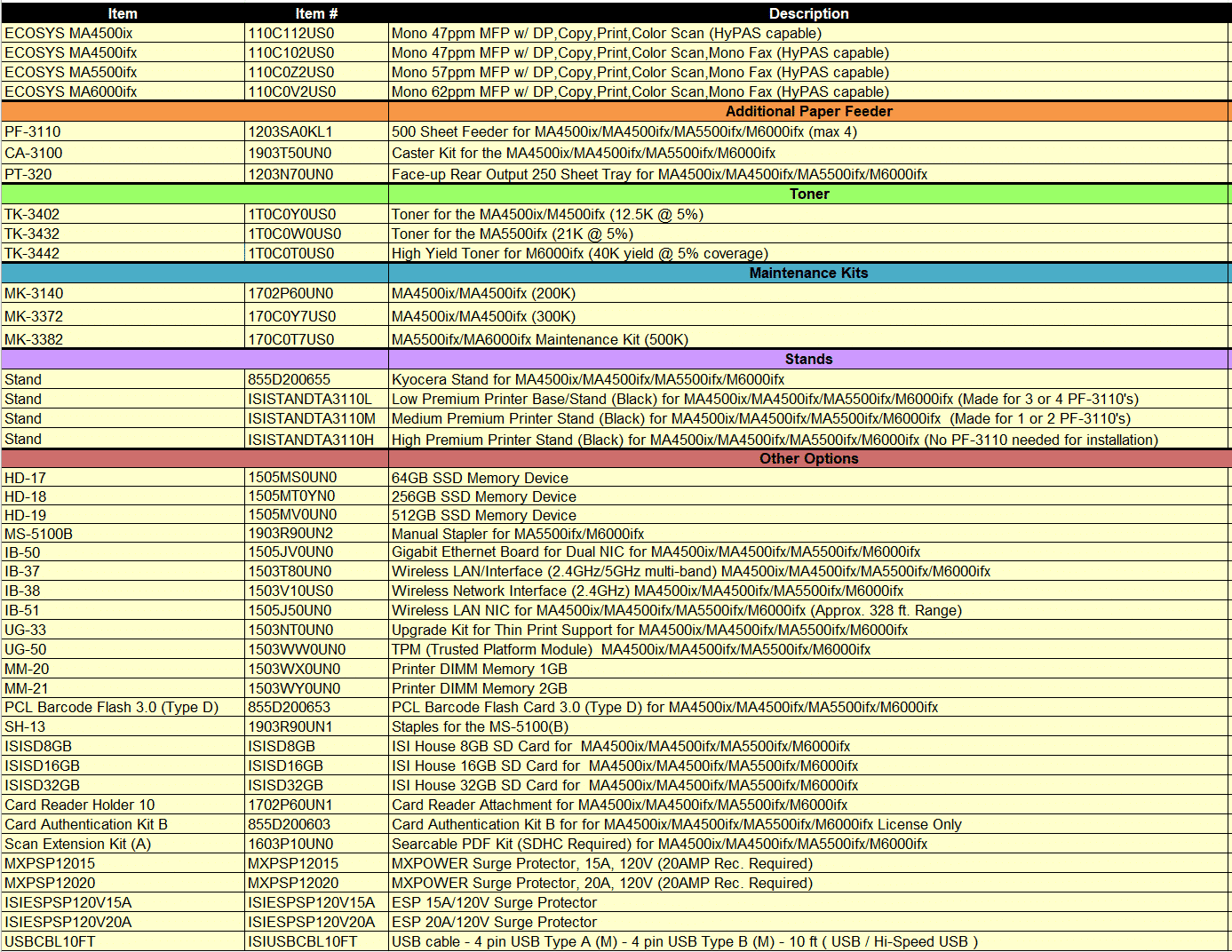 Need help – give us a call or visit: Kyocera Product Configurator