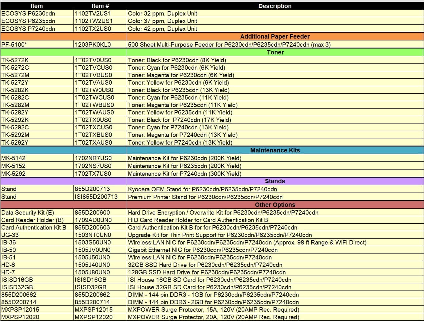 It is kept here so you may still find accessories, toners and maintenance kits easier. We appreciate your business.