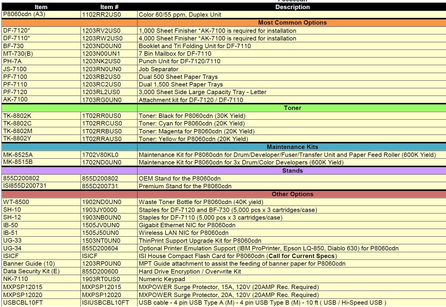 The Kyocera ECOSYS P8060cdn (Product Code: ECOSYS P8060cdn, Internal Code: IC# 855D400626) is a high-performance A3 color printer