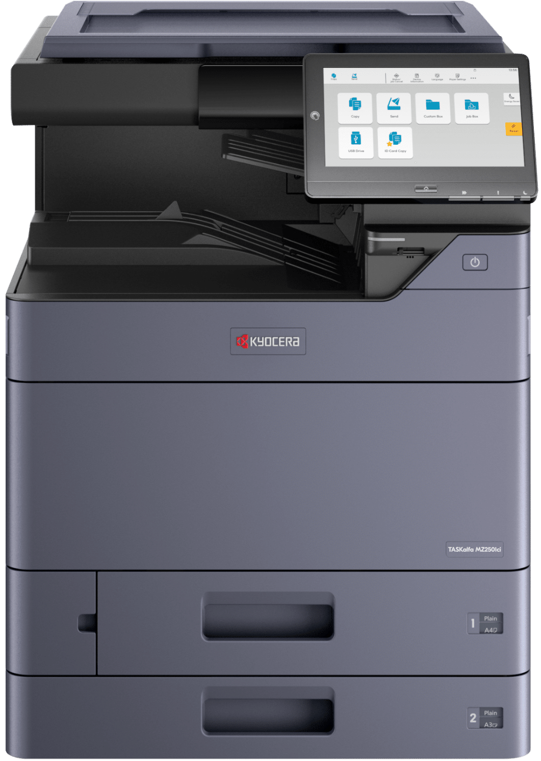 The Kyocera TASKalfa MZ2501ci is a high-performance A3 color multifunction printer designed for growing office environments that demand superior output, security, and intelligent connectivity. Offering print speeds up to 25 pages per minute and scanning at an impressive 274 images per minute, it combines efficiency with rich finishing capabilities, cloud integration, and best-in-class security.